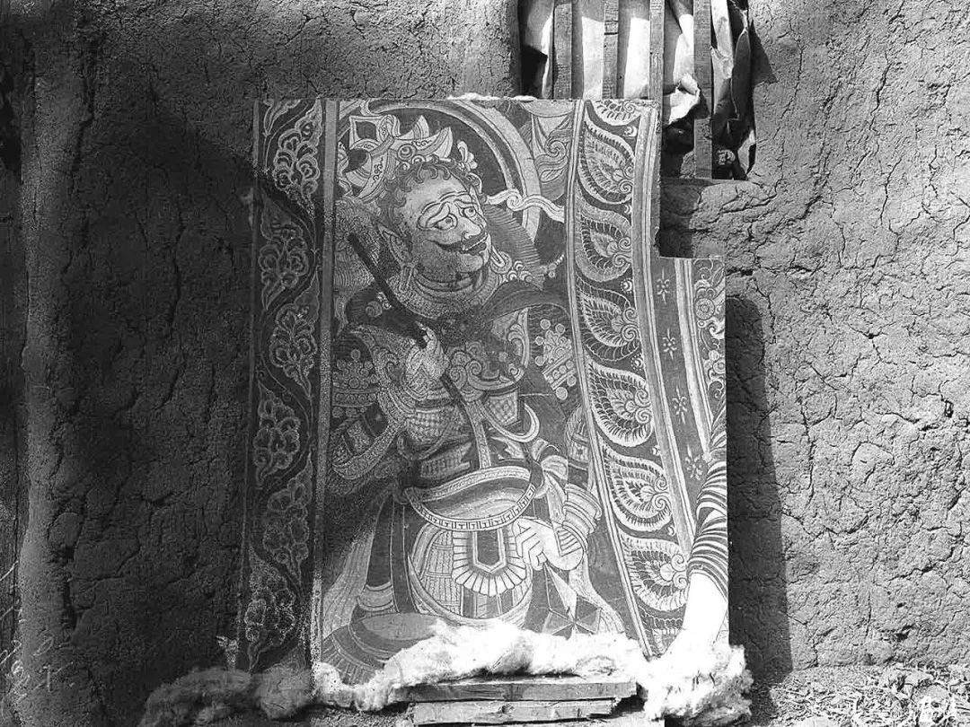 德國(guó)探險(xiǎn)隊(duì)從被埋在沙土中的柏孜克里克石窟中偶然發(fā)現(xiàn)了巨大的誓愿圖。巴圖斯用其嫻熟的技巧將壁畫(huà)小心謹(jǐn)慎地切割下來(lái),雇了一些民工來(lái)幫助包裝,滿(mǎn)滿(mǎn)裝了40只木箱運(yùn)回柏林。