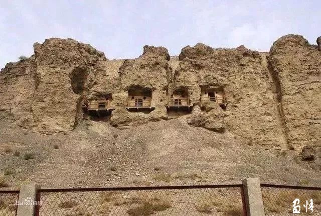 五個(gè)廟石窟是古代瓜、沙地區(qū)(今瓜州、敦煌地區(qū))以敦煌莫高窟為中心的外圍中、小石窟之一,位于莫高窟正南約100公里、肅北蒙古族自治縣縣城西北20公里的黨河西岸峭壁上。洞窟開(kāi)鑿在黨河水沖刷形成的砂崖上,砂崖高約30米,洞窟懸于半崖,距地約12——15米。在由南向北長(zhǎng)約300米的懸崖峭壁上,現(xiàn)存的洞窟共有19個(gè),唯有中間5窟可以登臨,故被人們稱(chēng)為“五個(gè)廟”,其中1個(gè)已在早年被毀。