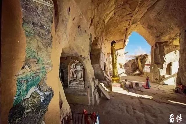 炳靈寺石窟,位于甘肅省臨夏回族自治州永靖縣西南約四十公里處的積石山的大寺溝西側(cè)的崖壁上,正式建立于西秦建弘元年(420年),“炳靈”為藏語(yǔ)“仙巴炳靈”的簡(jiǎn)化,是“千佛”“十萬(wàn)彌勒佛洲”之意?,F(xiàn)存有窟龕183個(gè),共計(jì)石雕造像694身,泥塑82身,壁畫(huà)約900平方米。