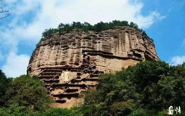 麥積山位于甘肅省天水市麥積區(qū),是小隴山中的一座孤峰,高142米,因山形酷似麥垛而得名。麥積山石窟始建于384-417年,存有221座洞窟、10632身泥塑石雕、1300余平方米壁畫(huà),以其精美的泥塑藝術(shù)聞名世界,被譽(yù)為東方雕塑藝術(shù)陳列館。