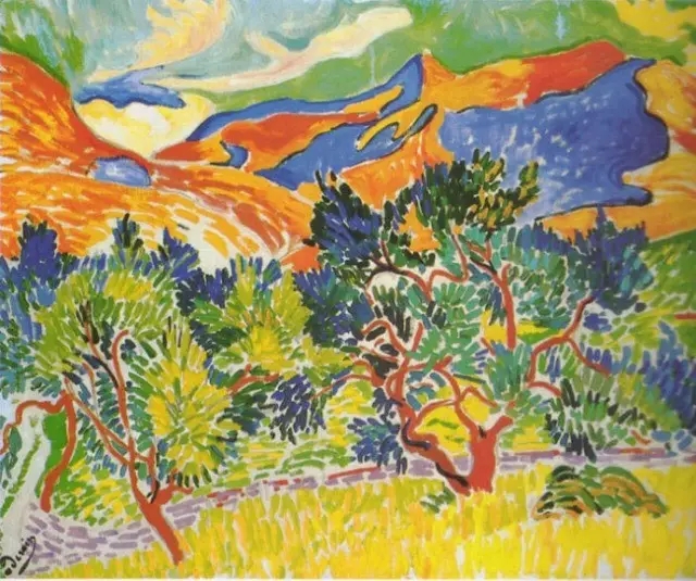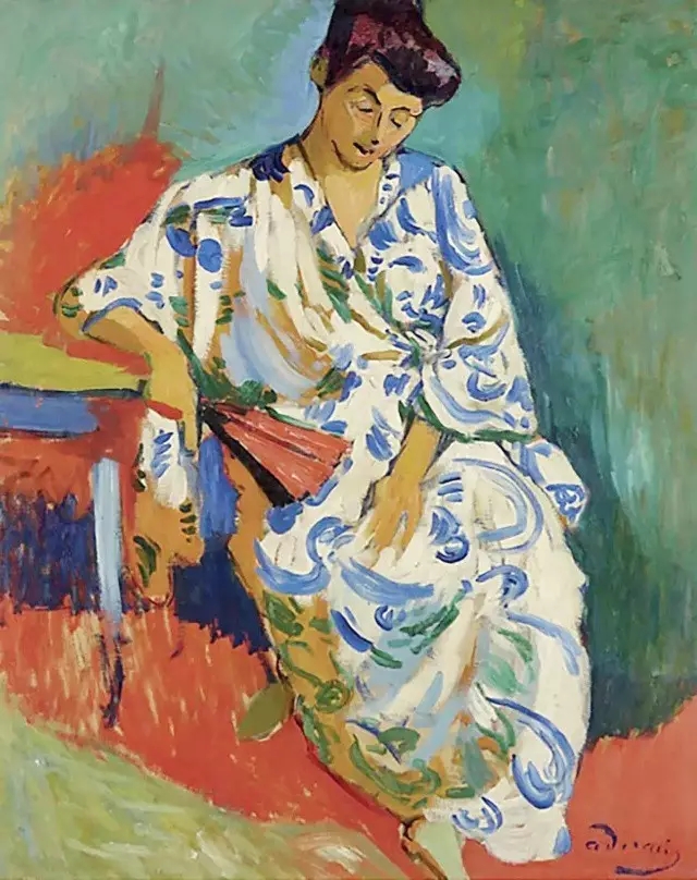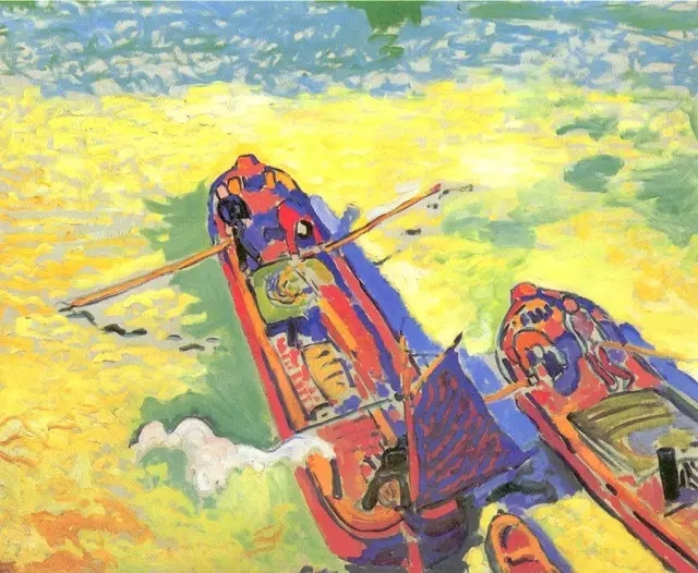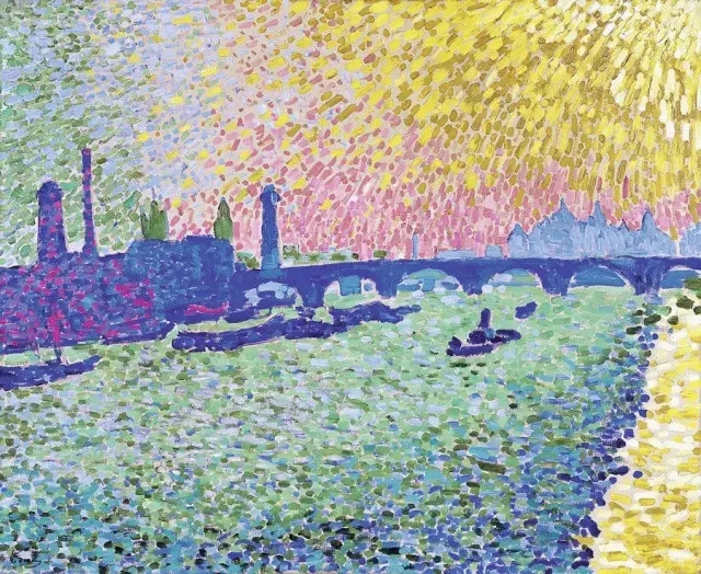 事實(shí)上野獸派畫家從顏料管里擠出的原色,不是直接排列到畫布上的而是應(yīng)自然本色來(lái)加以概括,使它更單純化,免去復(fù)雜的中間調(diào)子,不僅能引起觀者視網(wǎng)膜的振動(dòng)感應(yīng),還表達(dá)了一種飽和的情緒,比點(diǎn)彩派的"科學(xué)"排列更富感染力。