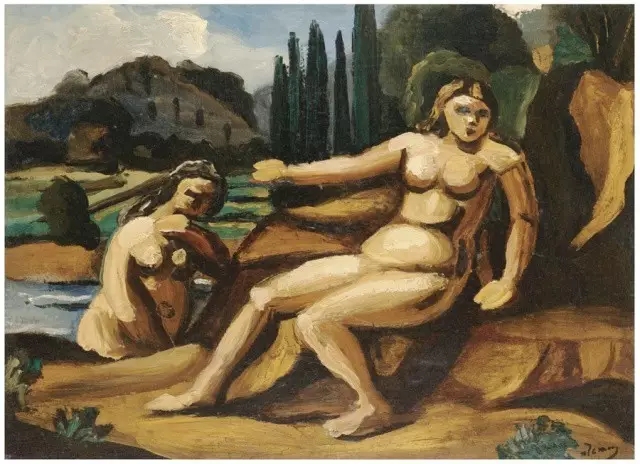但是他的藝術(shù)表現(xiàn)、空間處理和造型并沒(méi)有脫離古典法則,色調(diào)也類似新印象主義,看得出畫家想把傳統(tǒng)與現(xiàn)代結(jié)合在一起的愿望。
