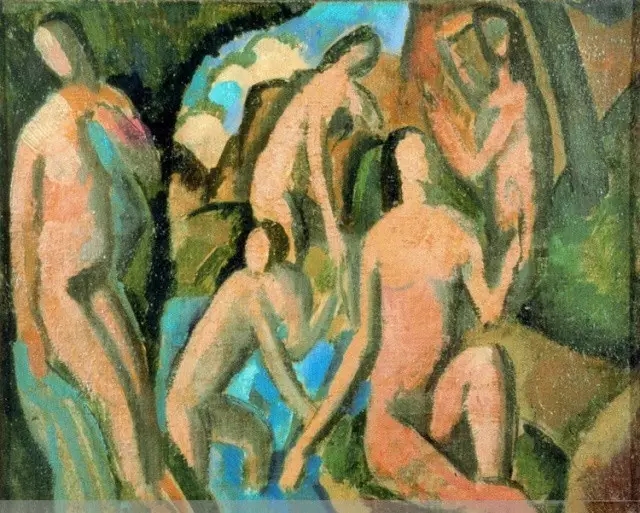 當(dāng)畢加索與勃拉克在進(jìn)行分析性立體主義時(shí),他便毅然決然不再與畢加索聯(lián)系。 晚期,德朗的作品更傾向于傳統(tǒng),除了風(fēng)景、靜物、肖像和裸體畫外,也從事裝飾畫。