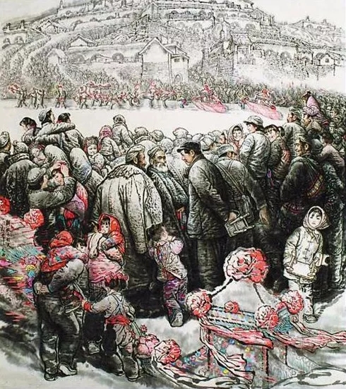 陳傳席(中國(guó)人民大學(xué)教授):在“文革”之前,有四位畫家對(duì)人物畫的影響很大,這四位畫家就是劉文西、方增先、黃胄和楊之光。劉文西和方增先影響比較靠前,劉文西的作品比較多一些,分量重些,但方增先寫了一本書,他倆影響是各有高低。我覺得這四大家中,劉文西的影響是最大的。