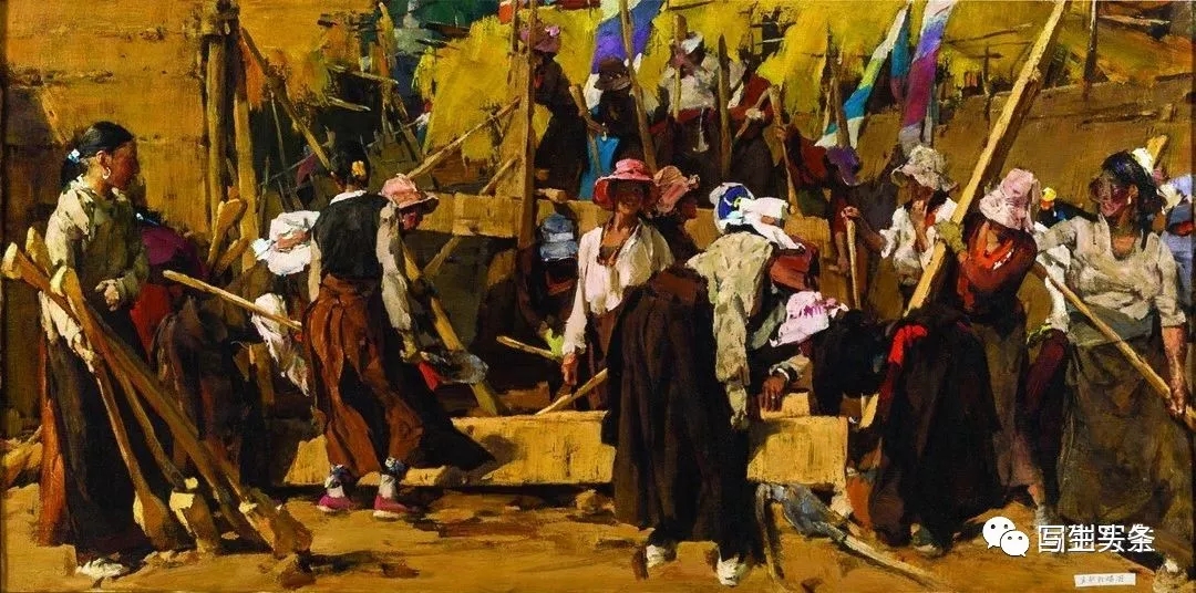 金秋打墻圖 宋仁偉 96cm×169cm 油畫