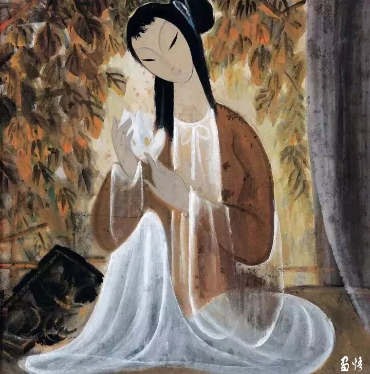 林風(fēng)眠 《拈花仕女》 65×65cm 紙本彩墨