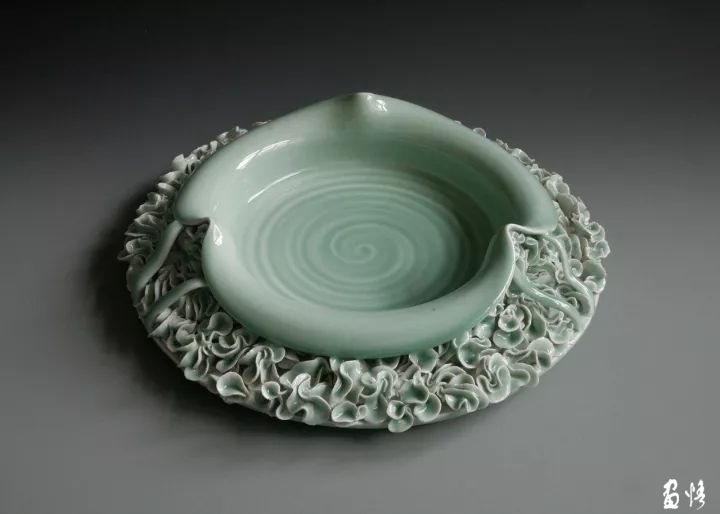 劉樂君《“雨滴”青釉方盤》▲