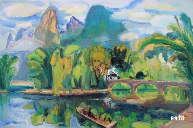 漓江漁舟云水圖80X120CM2013參加《中國油畫名家展》”,作品大藝美術(shù)館收藏