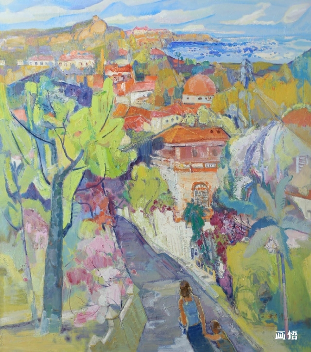志洋兄看到了這股潮流中潛藏的隱憂,他雖亦置身寫生大潮中,但能保持清醒與自覺。他把寫生當(dāng)成藝術(shù)創(chuàng)作的過程與手段,而非藝術(shù)的終極目的,把大自然對象當(dāng)做自己生命與情感表達(dá)的客體,當(dāng)做自己心靈性情與審美體悟和行筆用色借助的載體,用心去寫生,寫出了大自然的生命律動與生機(jī);用情去寫生,寫出了自己心中的生命感悟,寫出了自己心性的情感訴說?;蛟S正是有著這份自覺的追求,他的寫生作品結(jié)構(gòu)上善于取其質(zhì),去繁取簡,大膽而主觀處理。色彩上主觀而濃烈,讓人在其燦爛的色彩美感中品嘗到一股抒情的甘美,在以飽滿的筆觸營造出的繽紛里,感受到幾分的浪漫,感受到他內(nèi)心躍動的那份熾熱,讓人在其作品中體驗到人生陽光旅途的美好。記得高更有一句話:色彩是思想的結(jié)果而不是觀察的結(jié)果。志洋兄的油畫作品勝在色彩,美在色彩。他在色彩上的美,美在畫面的色調(diào),美在大膽的純色帶來的視覺力量。他的色彩不是自然秩序的展現(xiàn),而是心中主觀情緒的外化。他的色彩之美,正是其藝術(shù)思想多年來不斷沉淀不斷豐盈的外在表達(dá)。他的色彩境界,不是詩,不是詞,更像是元曲,通俗透著雅意,來自鄉(xiāng)野民間但又含著幾分矜貴的氣息、現(xiàn)代的洋氣。