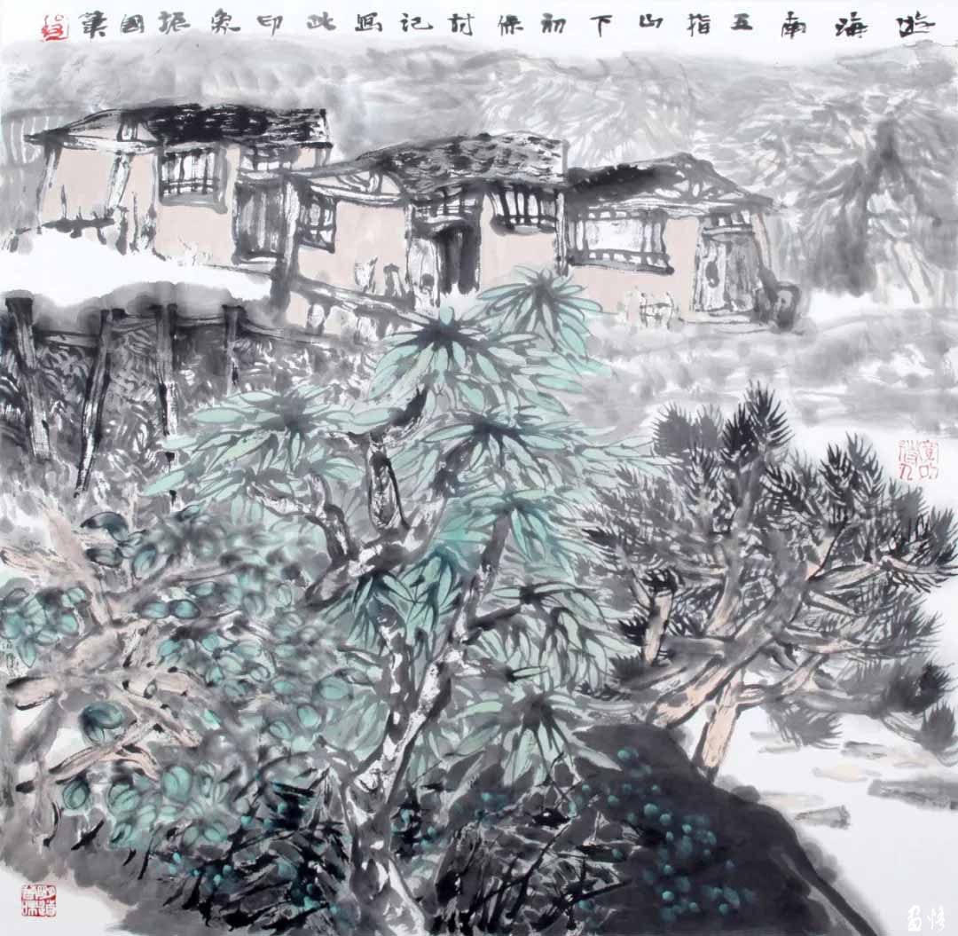▲何三寶作品 《山鄉(xiāng)春早》 69cm×69cm