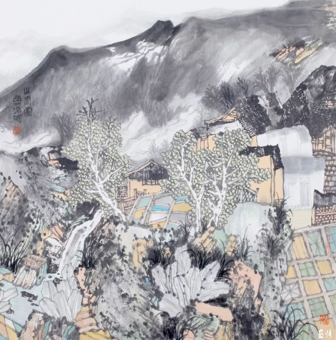 ▲滿維起作品 《苗鄉(xiāng)晴雨》 70cm×70cm