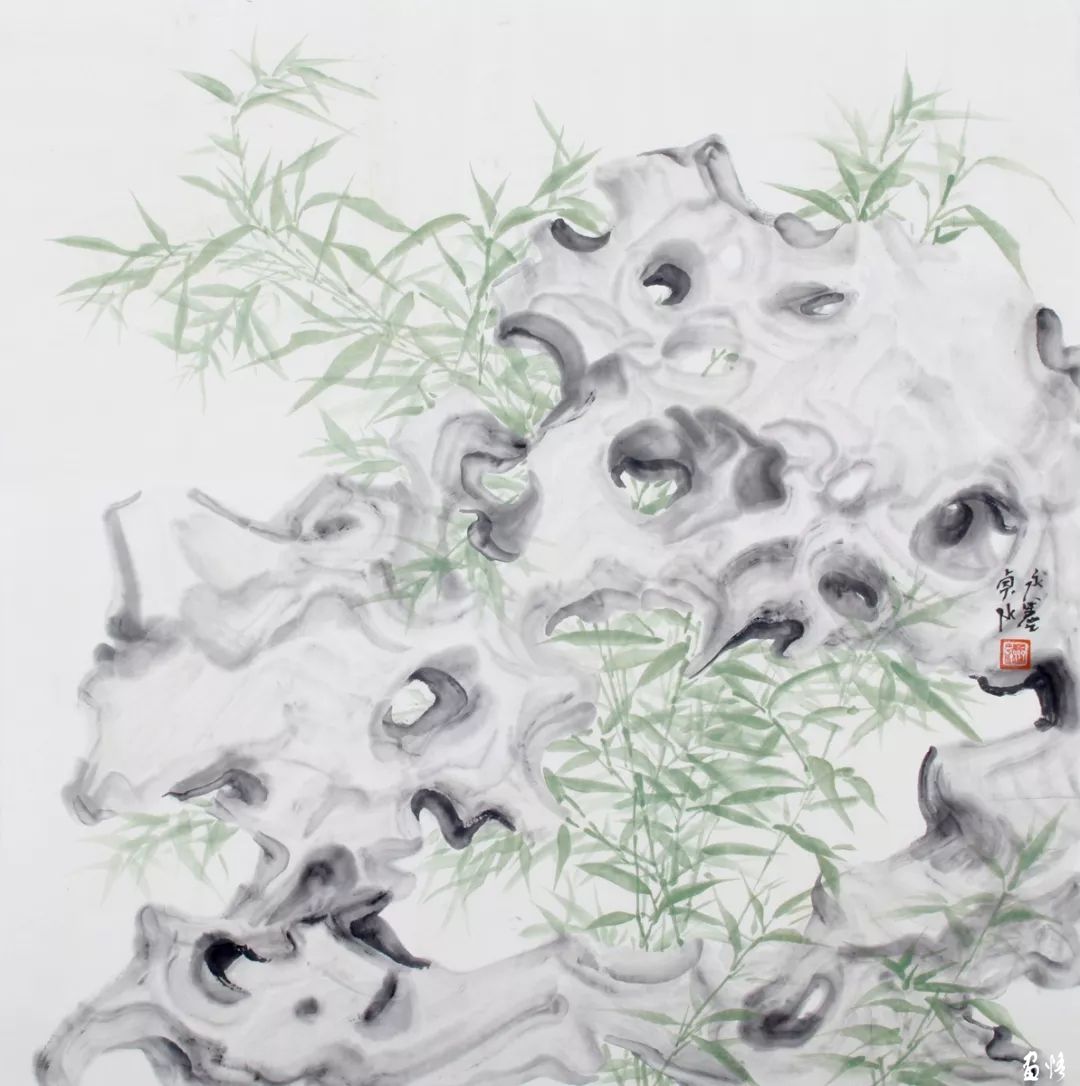 ▲齊永臻作品 《竹石圖》 70cm×69cm
