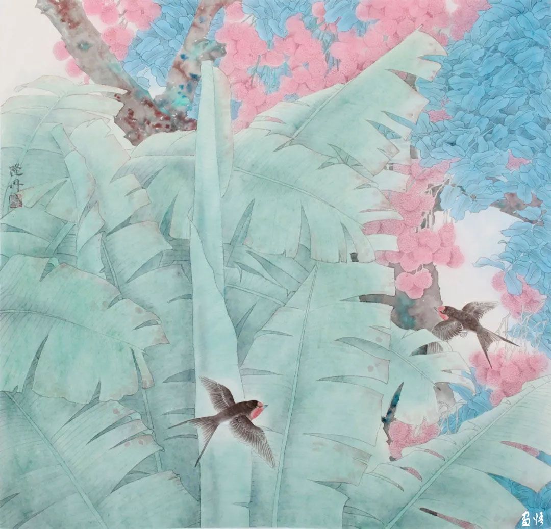 ▲王美芳&趙國經(jīng)作品 《賞春圖》 69cm×69cm