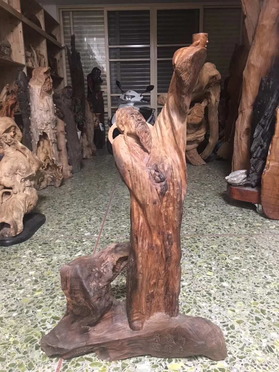 沈福和,國家一級高級技師,漳州工藝美術(shù)協(xié)會理事。1971年生于福建省詔安縣山河村.1992年畢業(yè)于廈門書畫院油畫制作部,在中國書畫之鄉(xiāng)詔安縣獨(dú)自創(chuàng)立根木雕作坊?!昂铀囂谩弊髌范啻卧谌珖⑹?、市、縣參展獲獎。