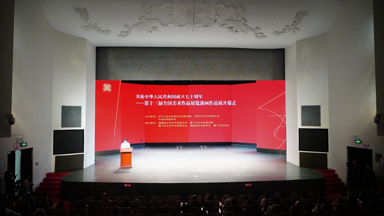 2019年9月24日上午,由中華人民共和國文化和旅游部、中國文學(xué)藝術(shù)界聯(lián)合會、中國美術(shù)家協(xié)會主辦,福建省文學(xué)藝術(shù)界聯(lián)合會、廈門市文化和旅游局、廈門市文學(xué)藝術(shù)界聯(lián)合會、福建省美術(shù)家協(xié)會、廈門市美術(shù)館承辦的“第十三屆全國美術(shù)作品展覽漆畫作品展”在廈門市美術(shù)館開幕。