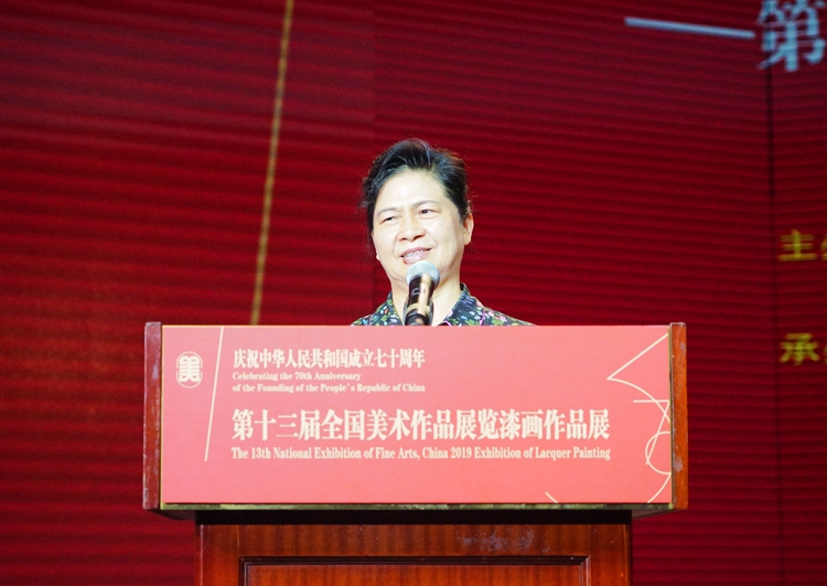 魯曉波副主席在致辭中指出,漆畫作為一門既年輕又古老的繪畫品類,經(jīng)歷了一個與眾不同的成長過程,特別是改革開放之后,創(chuàng)作理念逐步從保守走向開放,通過大膽吸收、借鑒其它畫種的優(yōu)點與長處,更加具有時代精神、民族氣派、地域特色的創(chuàng)作理念。如今,漆畫藝術(shù)創(chuàng)作題材日漸豐富,已呈現(xiàn)出具象、意象與抽象等多種藝術(shù)形態(tài),全方位地表現(xiàn)出漆畫作為一門純藝術(shù)的繪畫形式所應(yīng)有的狀態(tài),并彰顯出時代性、民族性、本土性等特色,融入了現(xiàn)代人的精神情感和審美風(fēng)尚,成為一門現(xiàn)代藝術(shù)的標(biāo)志,為新時代美術(shù)事業(yè)的繁榮發(fā)展起到了積極的推動作用。從第六屆嶄露頭角開始,每屆全國美展中的漆畫作品在品質(zhì)上都在穩(wěn)步提升。從其清晰的發(fā)展脈絡(luò)中,可以看出改革開放以來現(xiàn)代漆畫的發(fā)展歷程都和全國美展緊密地聯(lián)系在一起。近五年漆畫創(chuàng)作的繁榮,收獲了“第十三屆全國美術(shù)作品展覽”漆畫作品。本屆漆畫作品展的入選作品,凝聚了漆畫家們對現(xiàn)實生活的關(guān)注和感悟,體現(xiàn)了他們的藝術(shù)追求和人文情懷。