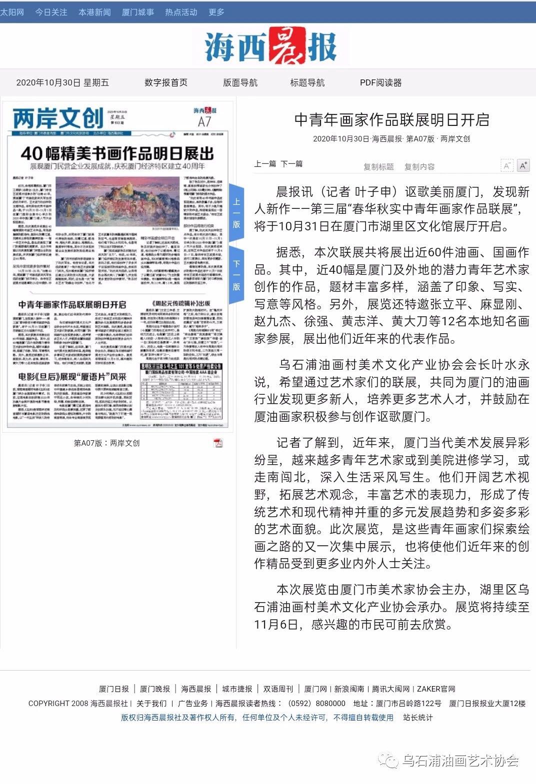 在當代。“為問青青河畔草,幾回經雨復經霜”。既然鳳凰可以涅槃,那么,原來聞名全球內地的廈門烏石浦油畫村便不再是商品油畫的集散地,而是閩南中青年油畫家的人才洼地;油畫創(chuàng)作的高地。2020年10月11日,廈門市湖里區(qū)烏石浦油畫村美術文化產業(yè)協(xié)會第三屆(選舉)換屆大會后,當月底就在湖里區(qū)文化館展廳,由廈門美術家協(xié)會舉辦的《謳歌美麗廈門,發(fā)現(xiàn)新人新作……第三屆“春華秋實中青年畫家作品聯(lián)展》展示了新一代烏石浦油畫村人的新氣象……新的領導團隊展示了改革創(chuàng)新,雷厲風行的氣魄;新希望……既然上世紀六七十年代,經濟起飛時期的日本可以憑借強大的經濟力量,推出日本的“三山”(東山魁夷、平山郁夫、高山辰雄)為代表的日本畫,那么,借助中國經濟疫后最先復蘇的強勁動力,包括廈門油畫在內的中國油畫,同樣可以因其當代性,民族性助力中華文化的偉大復興。