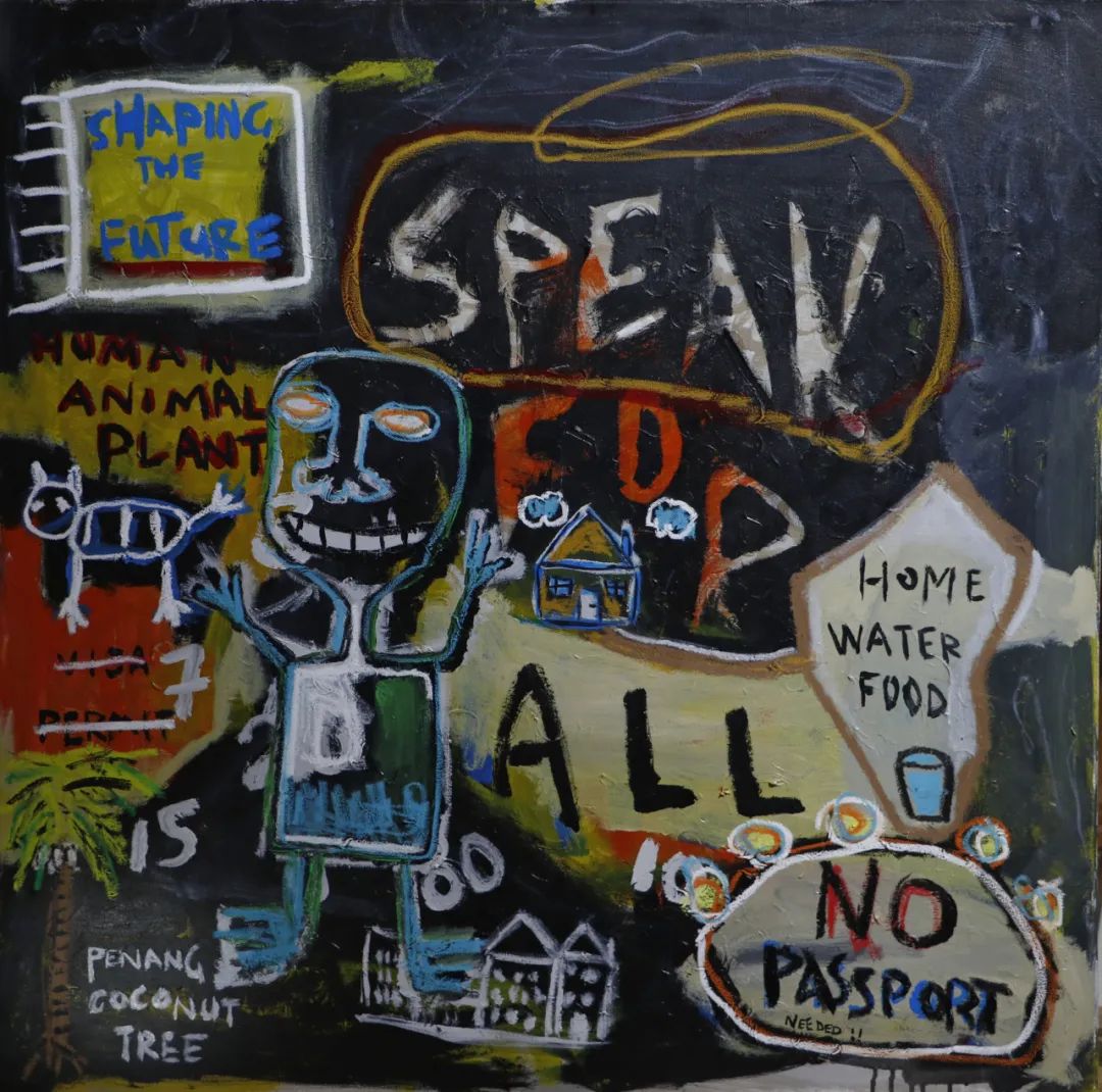 《We Speak, We Speak For All》/ A.Cally / 100cm×100cm / Mixed Medium On Canvas / 2021