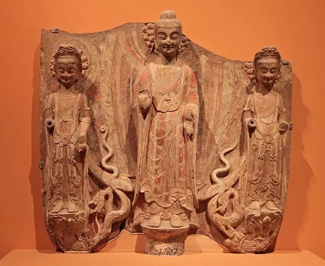 彩繪貼金石雕佛菩薩三尊立像 東魏 1996年山東青州龍興寺窖藏出土