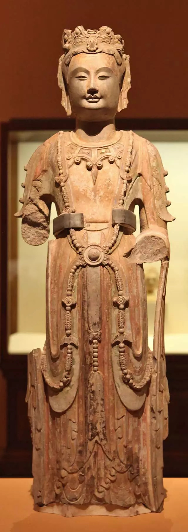 彩繪貼金石雕菩薩立像局部 北齊 1996年山東青州龍興寺窖藏出土