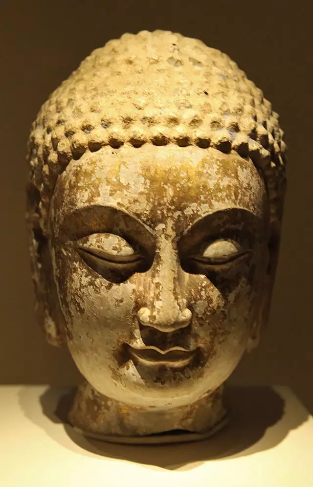 貼金石雕佛頭像 北魏 1996年山東青州龍興寺窖藏出土