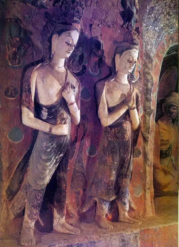 塑像是石窟的主體,壁畫(huà)在石窟中雖然對(duì)建筑起裝飾和美化作用,對(duì)雕塑起補(bǔ)充和陪襯作用,但其數(shù)量最多,規(guī)模最大,藝術(shù)技巧最精湛,內(nèi)容最豐富,涵蓋了社會(huì)生活與家庭生活的方方面面,生、老、病、死、衣、食、住、行,面面俱到,無(wú)所不包,充分體現(xiàn)了古人不同時(shí)期的文化生活,表