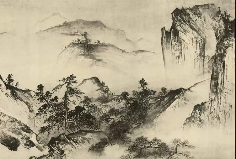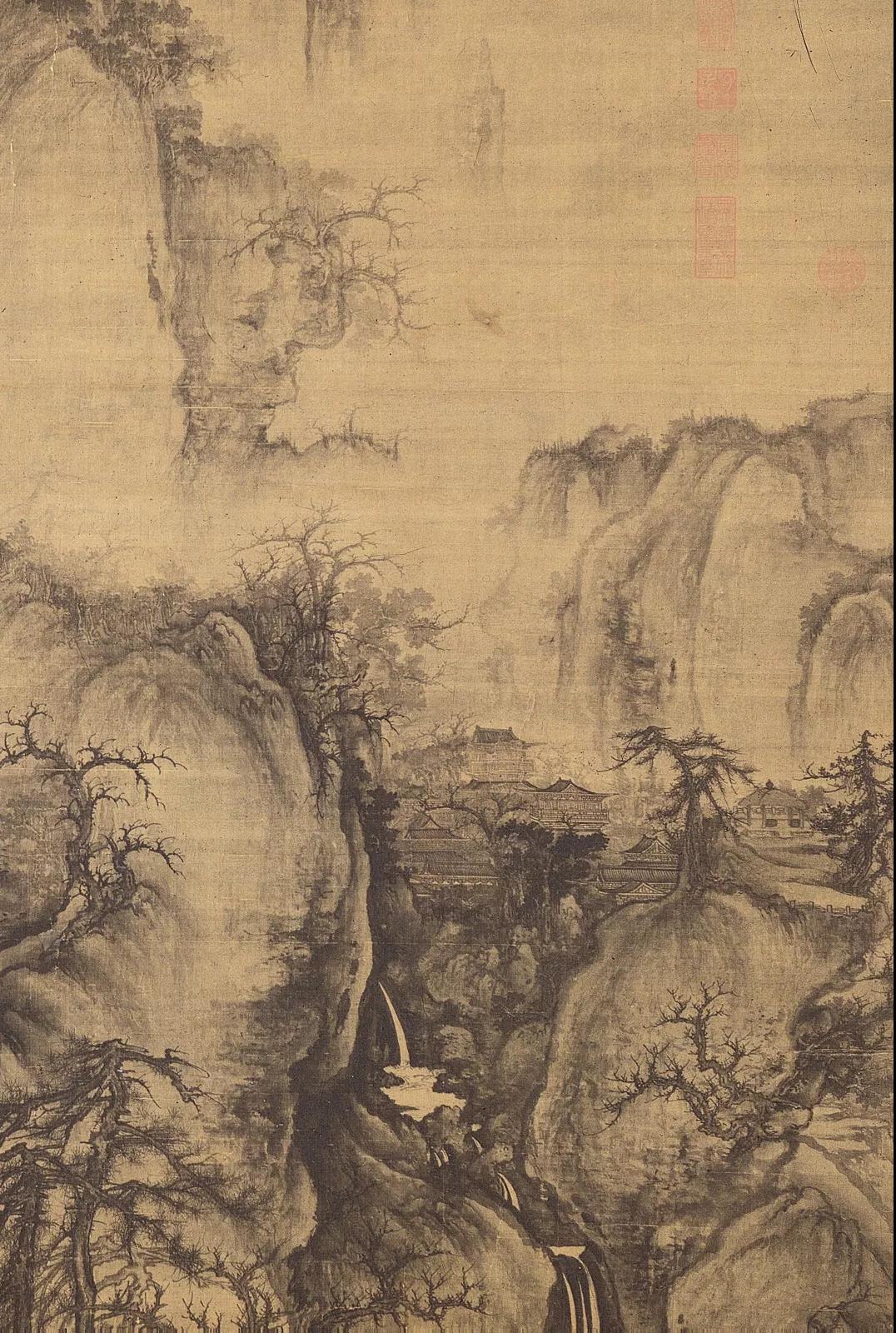 如北宋范寬的《溪山旅行圖》,瀑布水流從高處激流而下,而下方卻只是茫茫水汽,身臨其境之感撲面而來。