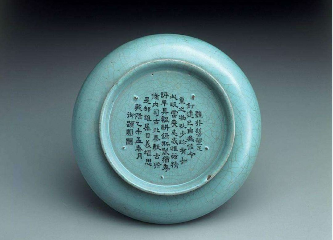 素色無紋的天青色汝瓷,搭配若隱若現(xiàn)的冰裂紋,樸素得好似找不到欣賞焦點,但靜心細(xì)觀,會發(fā)現(xiàn)天青色的靜謐配合著冰裂紋的靈動,動靜結(jié)合,相得益彰,更有著器物有盡,而意境無窮的感染力。