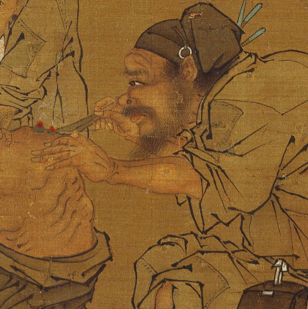 畫(huà)中的郎中并不富裕,但他卻能聚精會(huì)神為病人灸艾,仿佛他眼前小小的艾條,就是世界的中心,這就是醫(yī)生應(yīng)有的醫(yī)德呀!