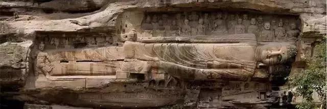 ▲安岳臥佛院·第3號釋迦涅槃造像摩崖造像·盛唐