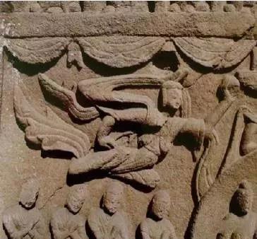 ▲云岡第34窟·西壁佛龕北側(cè)上隅飛天·北魏