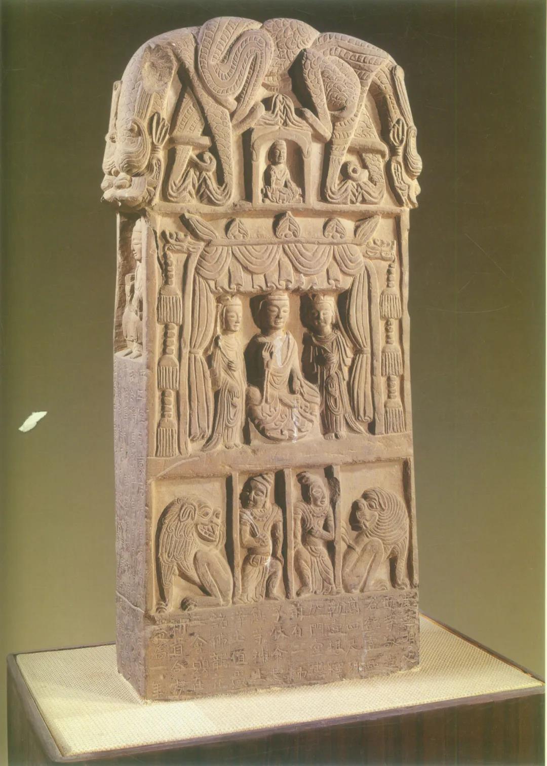 北周佛教造像之坐佛與脅侍菩薩及獅子和御獅奴組像(甘肅省博物館)